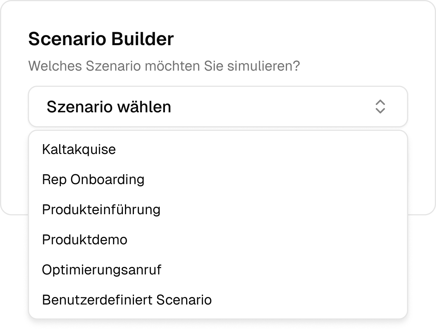 Szenarien ermöglichen die schnelle Erstellung realistischer Trainingssituationen – maßgeschneidert auf Rolle und Zielgruppe.